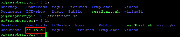 脚本文件的运行效果是在pi目录下新建一个hello.c文件,并且在hello.c文件里添加“hello word!”字符串。