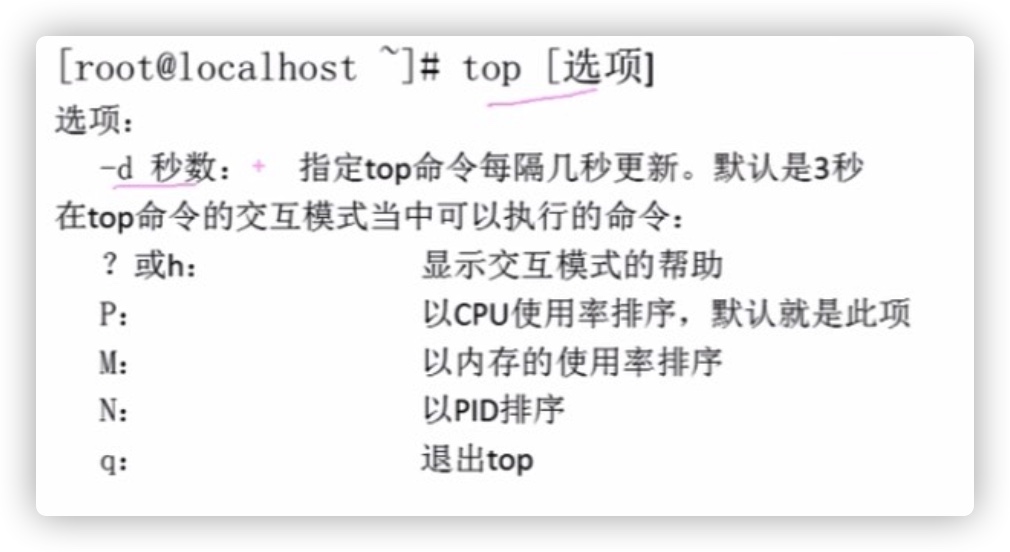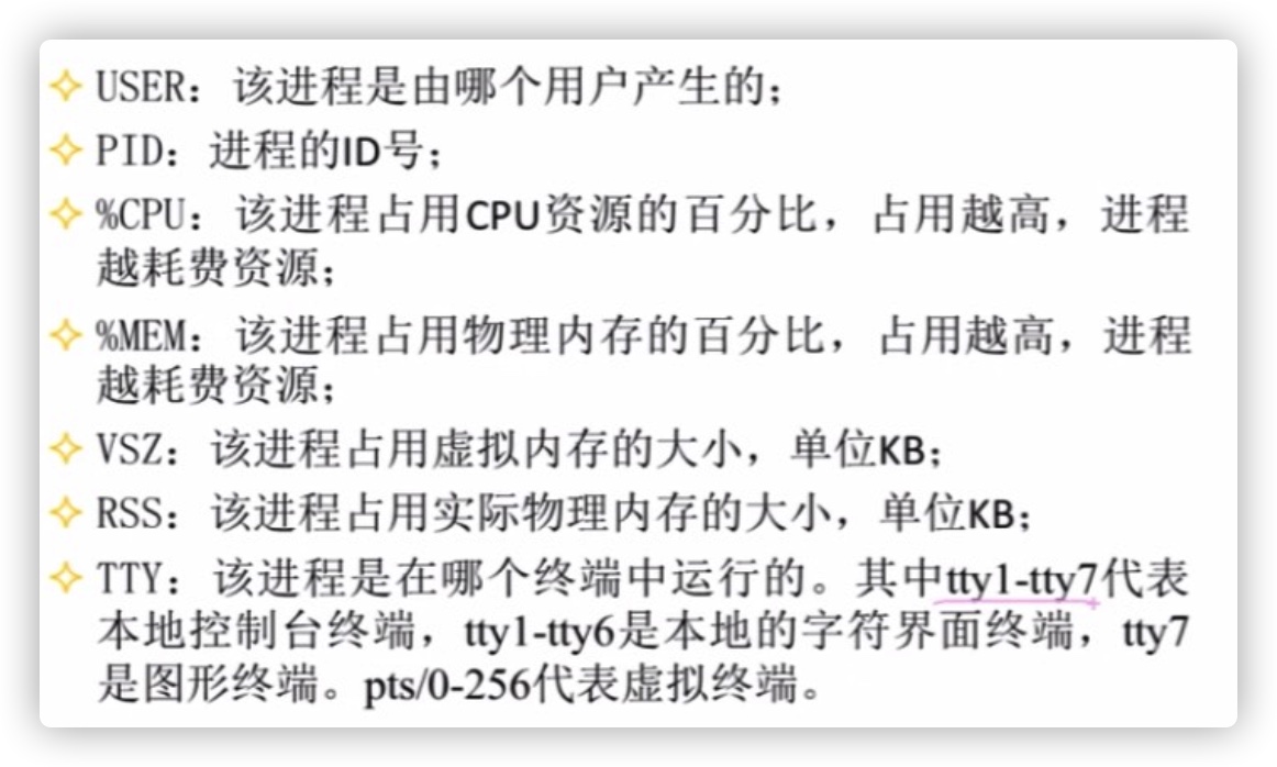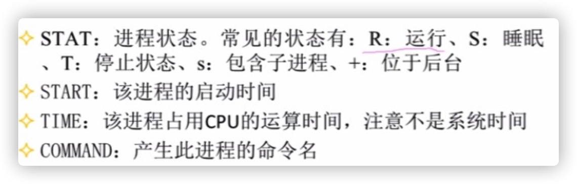 第11列及最后: COMMAND 进程名字(命令,选项 ) []括起来的是内核进程, 其他是系统进程 systemd pid是1第 1个进程.